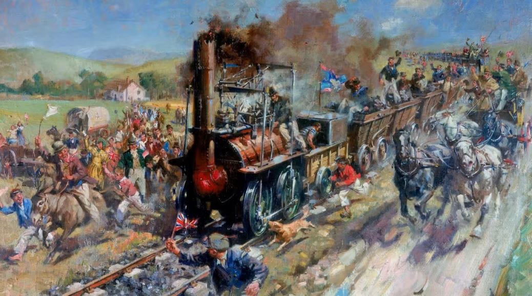 On September 27 1825 a steam train crowded with excited passengers travelled 26 miles from Shildon via Darlington to Stockton in north-east England. It broke down on route, and one man fell off and had his foot crushed. But the journey is recognised as the birth of the railway age, which was to transform human mobility, business and social life around the globe.